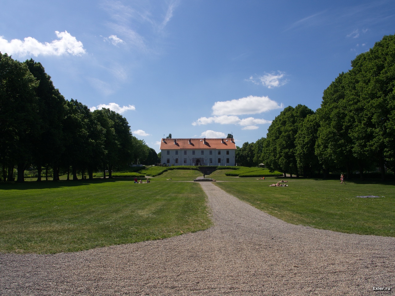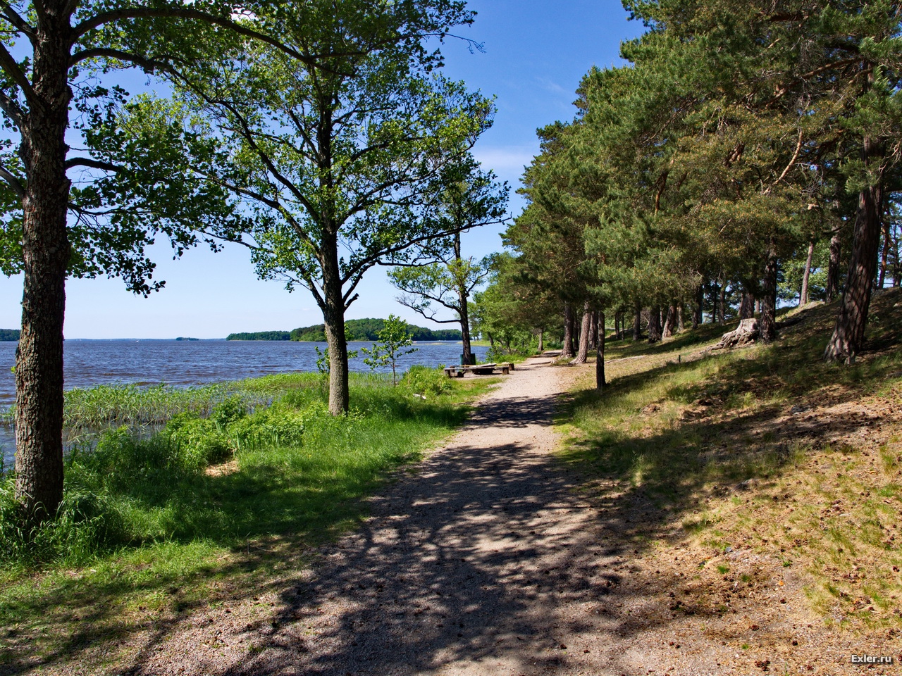 Приехали в местечко под названием Стренгнас, где у нас был обед. Сосновый лес, марина с яхтами, озера и зеленые лужайки. Шведы оттягиваются вовсю - загорают, купаются.