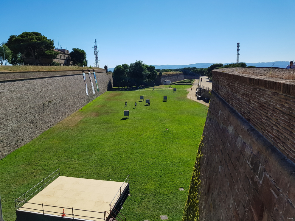 Подошли к крепости Монтжуик. Первоначально на этом месте была сторожевая башня. В 1640 году здесь построили крепость - начинались восстания каталанов против испанцев (восстания "жнецов"). Каталаны обратились за помощью к французам, после чего французские войска вошли в Каталонию и каталаны с французами испанцев отсюда вышибли. После этого они успешно отбивались от испанцев десять лет, однако в 1652 году испанцы снова захватили Каталонию, что им не могут простить до сих пор.