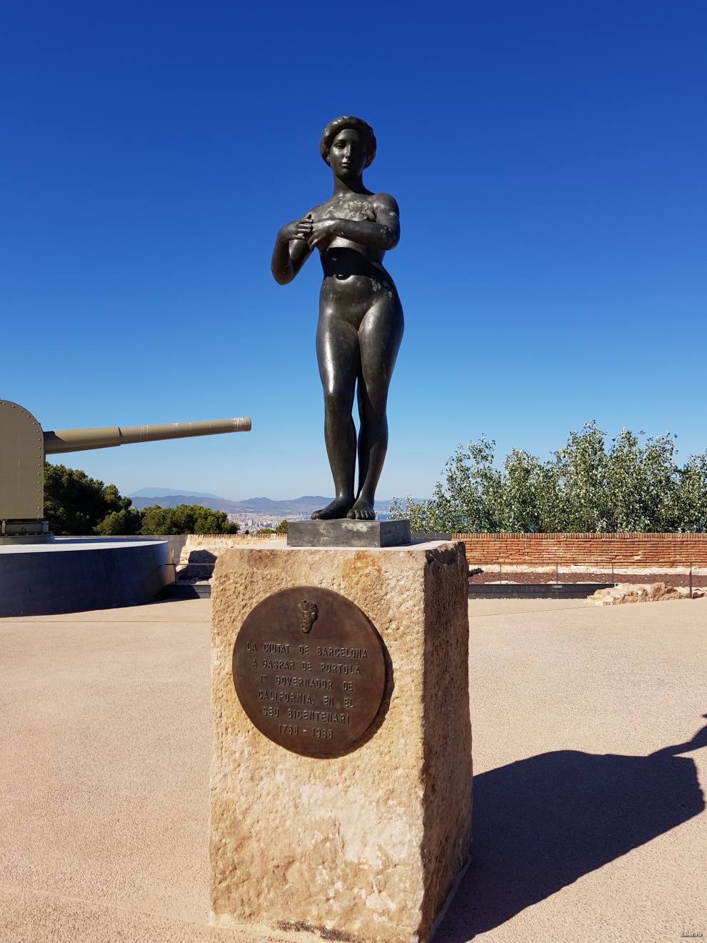 На памятнике надпись: Гаспару де Портола, первому губернатору Калифорнии - от города Барселоны. Гаспар де Портола родился в Каталонии и действительно был губернатором, а также вице-королем Калифорнии, а вот почему ему в качестве памятника поставили обнаженную даму - то мне неведомо. Впрочем, вряд ли ему это было неприятно, как я думаю.