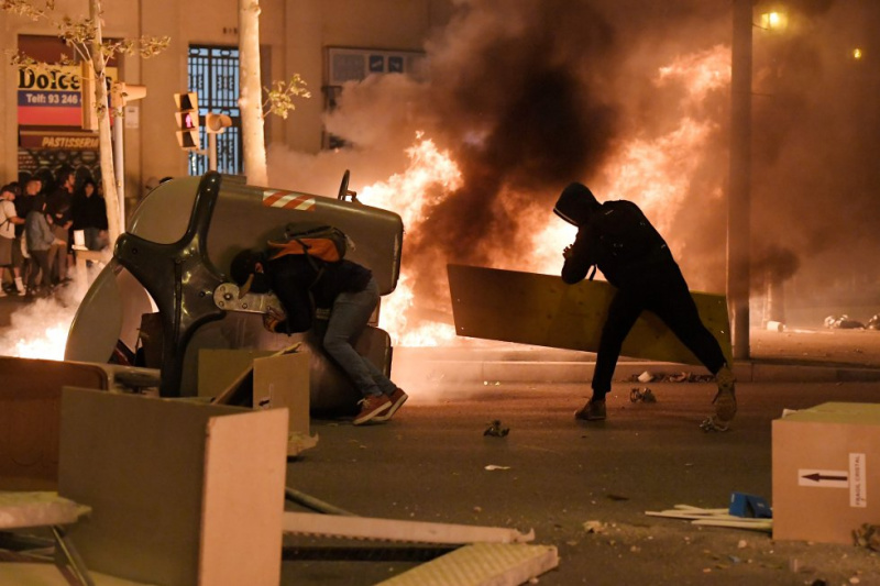 Демонстранты зажигают мусорные контейнеры - LLUÍS GENÉ (AFP).