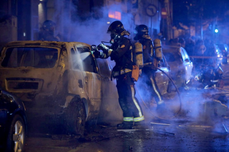Пожарные тушат машины, подожженные радикалами - АЛЬБЕРТ ГАРСИЯ.
