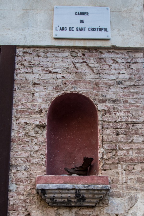 В таких нишах обычно устанавливают фигурки различных святых. Но в данном случае решили обойтись обычным сапожком - долой религиозный дурман!