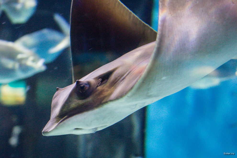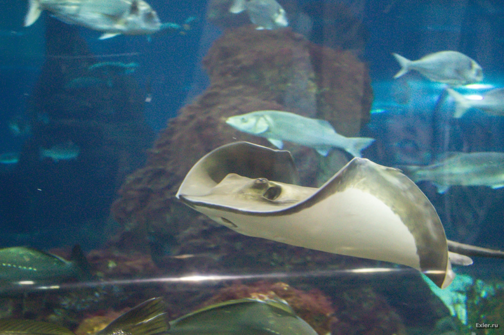 Скатов в океанариуме очень много. Так и шныряют, так и шныряют.