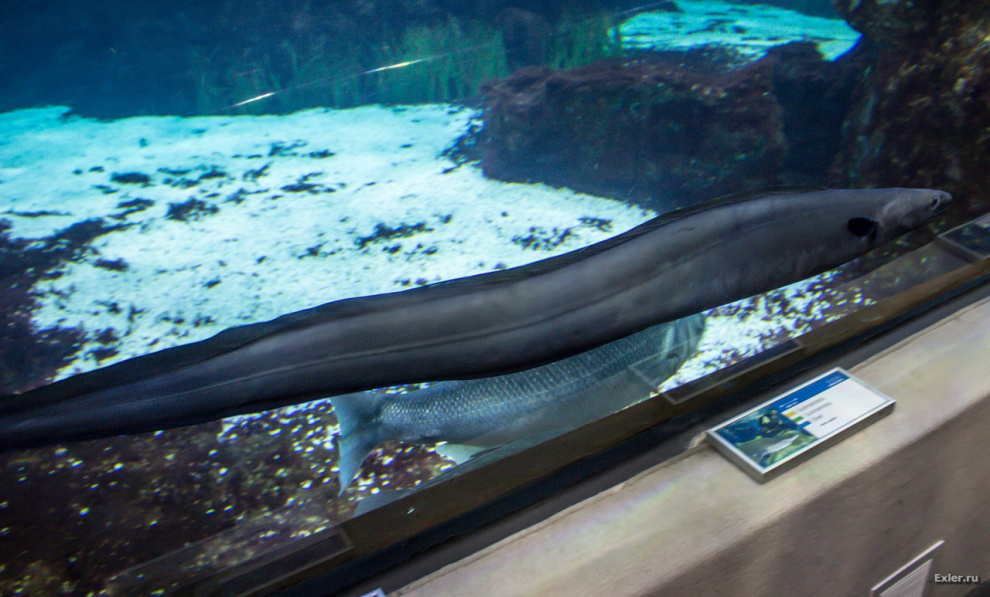 Олбанский Лефф: Мурена практически безопасна для человека, а вот "Один из самых популярных видов рыб в океанариуме. Рядом с ними больше всего народу толпилось" - это и есть СМЕРТЬ, при чём мгновенная, от малейшего касания, это рыбы-зебра, она же рыба-крылатка. Укол колючками этой рыбы очень болезнен. За резкой болью следует ухудшение состояния, которое заканчивается параличом скелетной и дыхательной мускулатуры. Поражающий яд - Тетродотоксин.