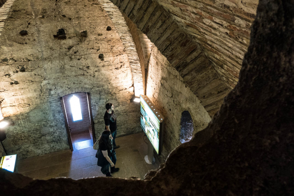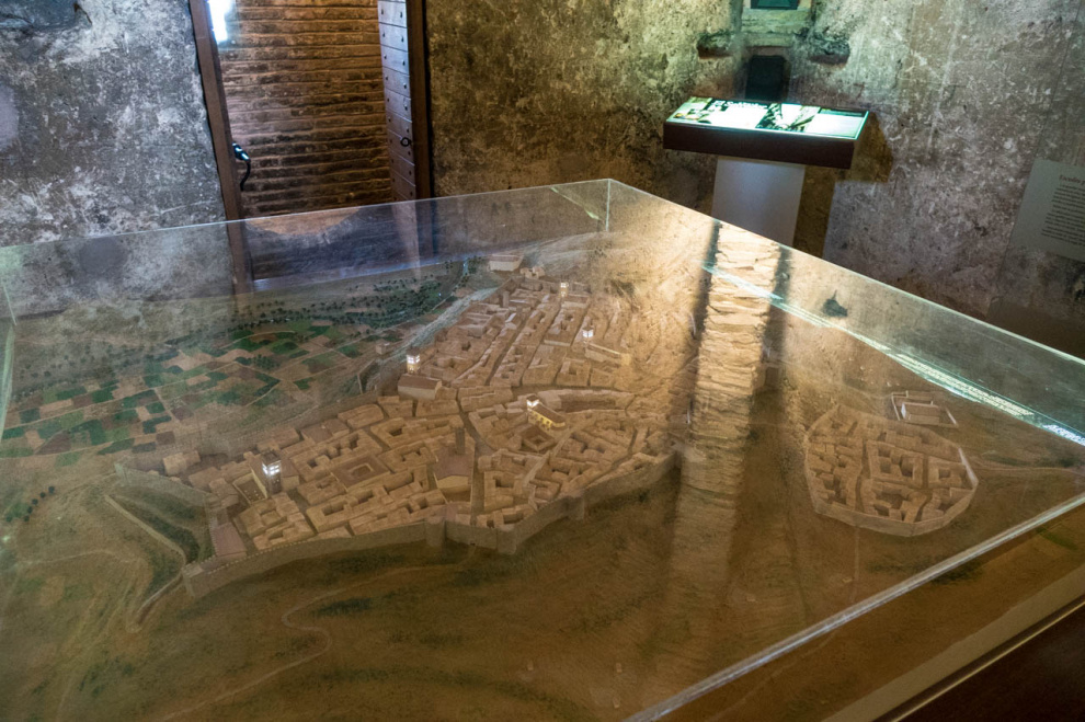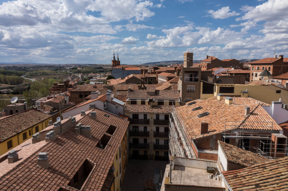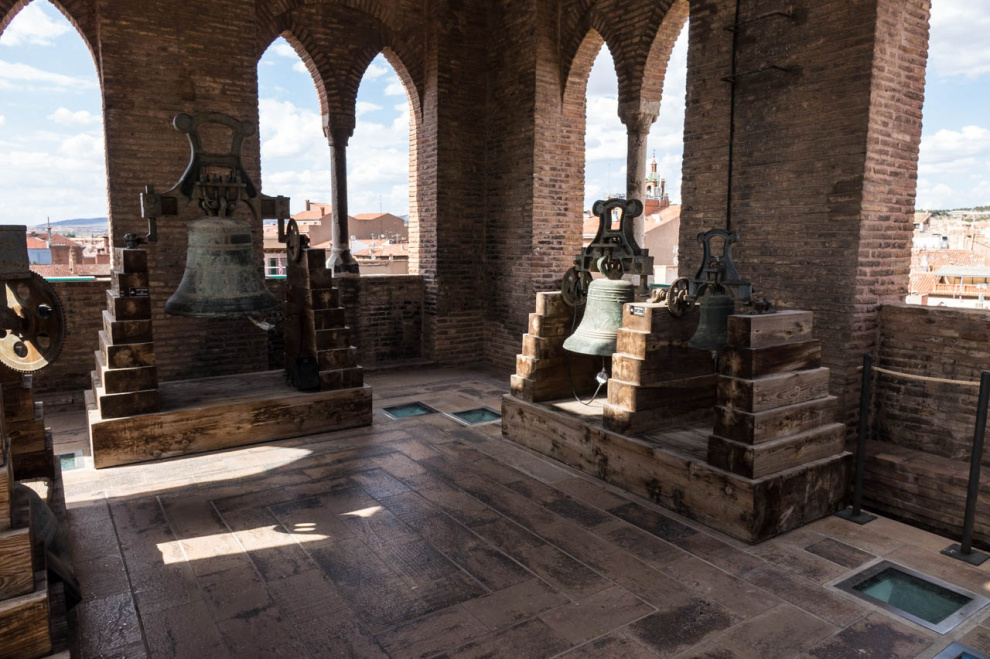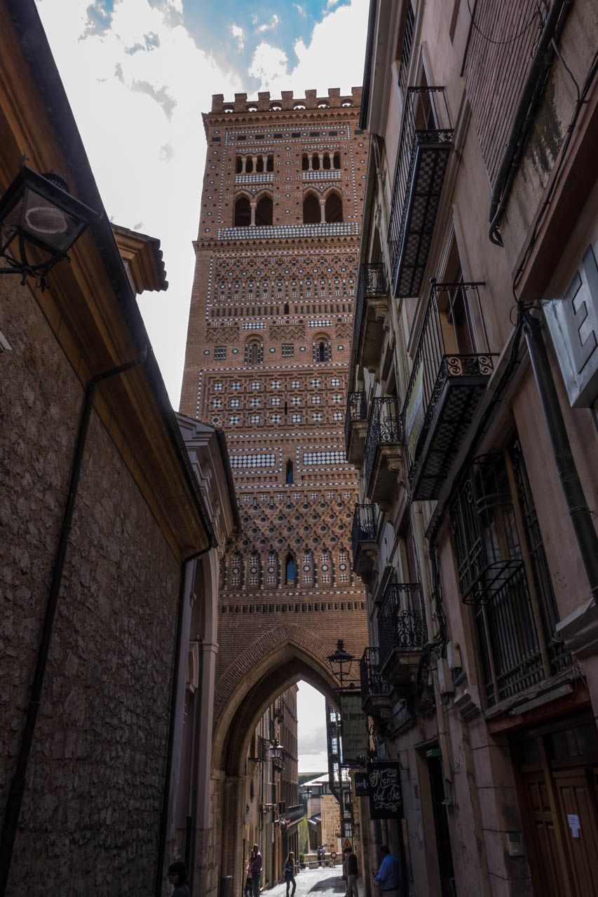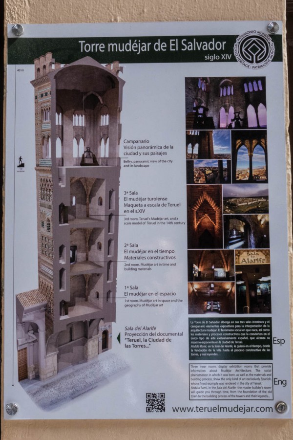 Под аркой башни есть маленькая неприметная дверь - туда имеет смысл войти, потому что внутри можно заплатить какие-то небольшие деньги и подняться на самый верх башни. На каждом этаже башни есть небольшая музейная комната: в них рассказывается об истории создания всех четырех башен Теруэля.