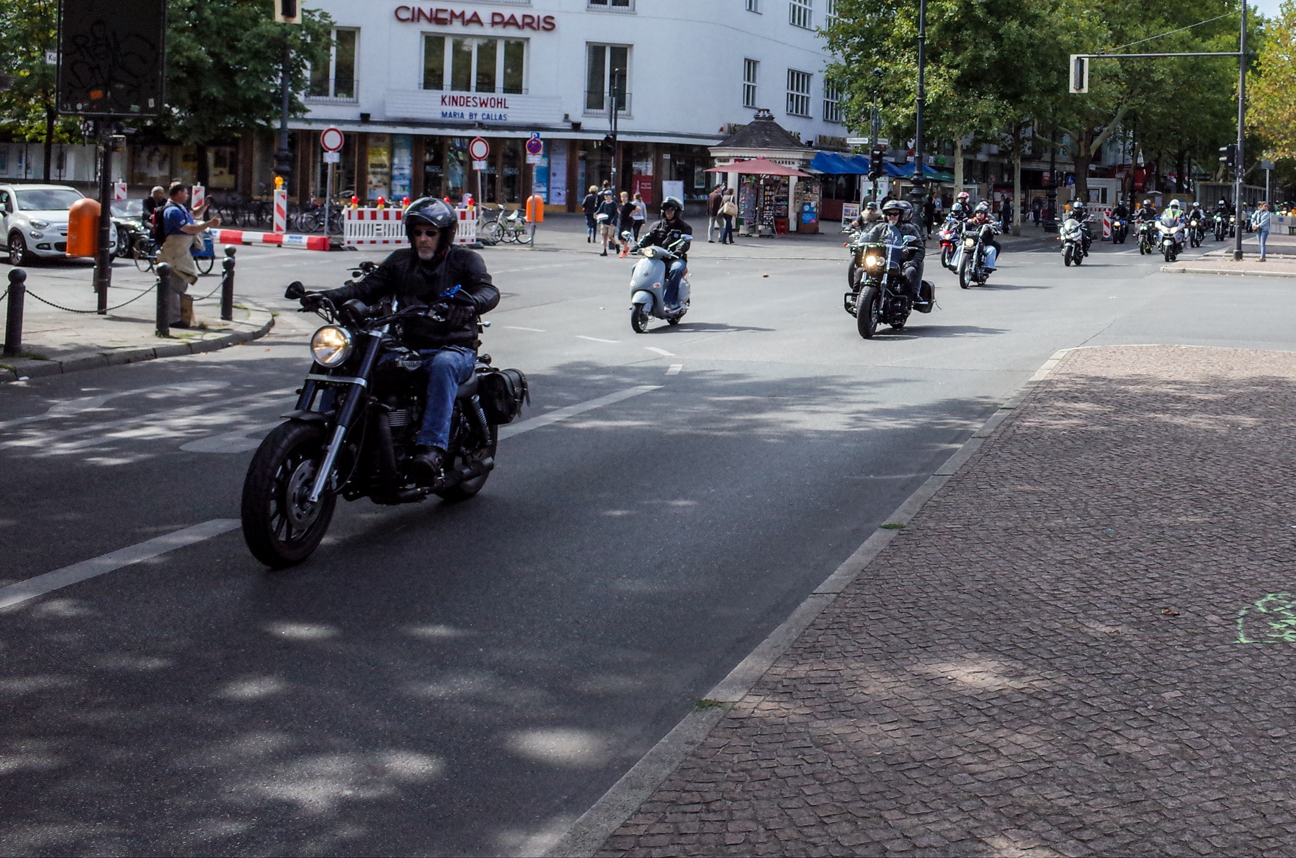 У нас ежегодно традиционно такие парады на открытие байкер-сезона (обычно в апреле-начале мая) и на закрытие (в октябре). Так же вот торжественным строем едут по улицам в сопровождении полиции. Состав многонациональный. Весьма колоритное зрелище.