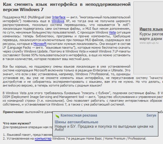 Какая же все-таки мерзость эта бегунская контекстная реклама. Я обычно стараюсь не заходить на сайты, которые ее используют. Потому что это самый отвратительный вид рекламы, даже еще хуже, чем всплывающий флешовый кошмар. Почему самый отвратительный? Потому что маскируется под нормальные гиперссылки. А там вместо ссылок по теме - дебильная реклама. Которая, к тому же, еще и черта с два реально контекстная. Вот, посмотрите, как это смотрится в технической статье. И посмотрите на потрясающую контекстную рекламу со слова "компьютер". Просто прелесть.