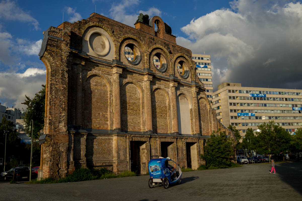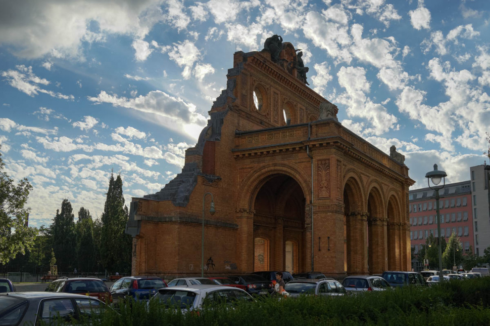Так назывемые "Новые Анхальтские ворота", вход в стоявший на этом месте вплоть до 50-х годов XX века Анхальтский вокзал. Так как вокзал находился в Западном Берлине, а поезда шли в восточную часть Германии, то он потерял своё былое значение и постепенно превратился в руины: