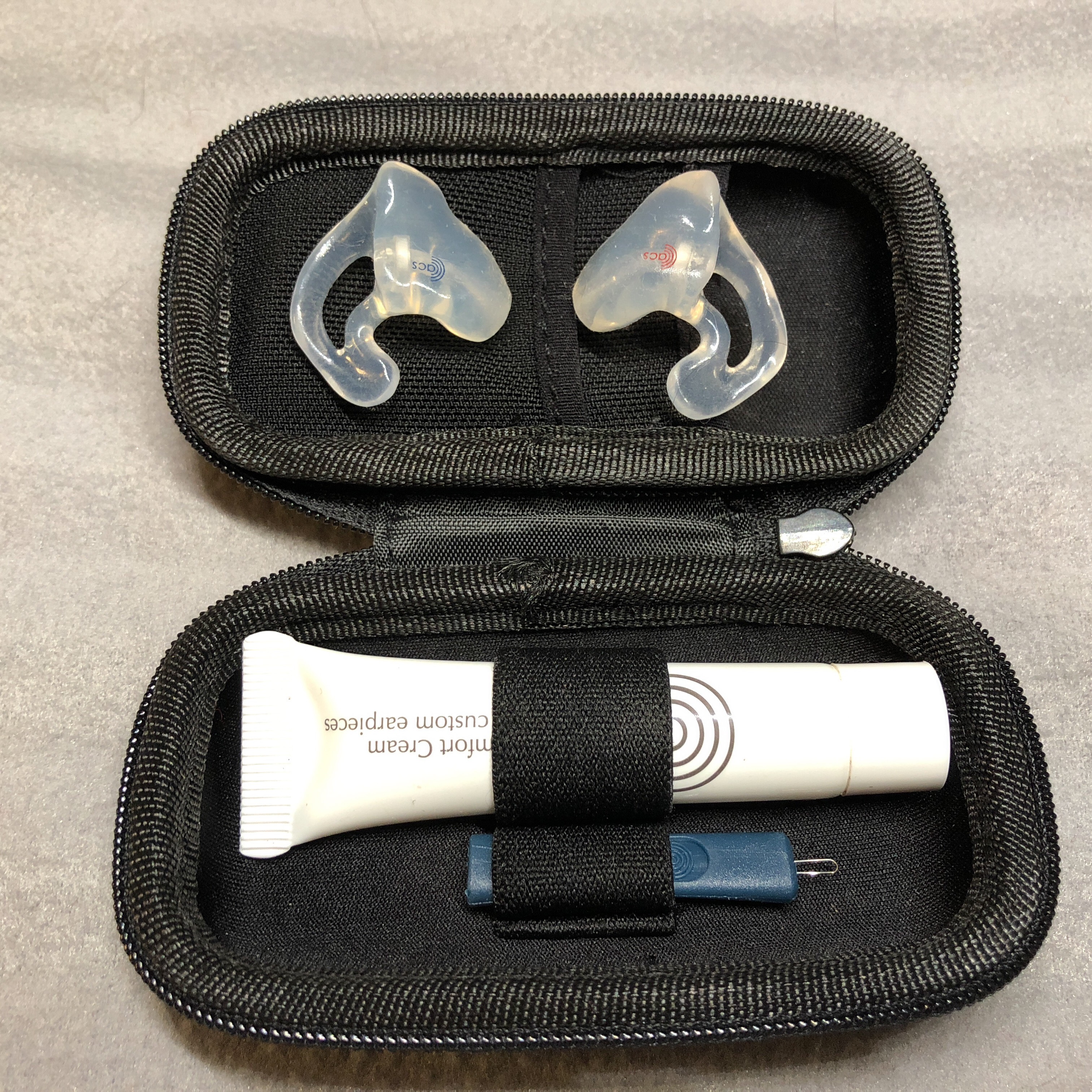 Возможно, кому-то будет интересно узнать и про другие беруши. Сразу оговорюсь, что речь идёт про вещь профессионального назначения, а не бытового. Беруши для звукорежиссеров производства acscustom.com Цена 7500 руб. Приобретал для работы на громких концертах. Брал с звукоизоляцией-17dB (есть до -23 dB) Это позволяет не портить слух находясь на пультовой по 5-8 часов при звуковом давлении 110-116 dB. При этом комфортно, так как можно слышать собеседника и не портить слух. Есть представительство в Москве, где мне и делали отливки по которым потом изготовили беруши. В них сменные фильтры, которые и обеспечивают звукоизоляцию, их можно докупать и иметь беруши с разной шумоизоляцией. В комплекте чехол и специальный крем для максимально плотной посадки. Опционально заказал их с со специальными «ушками», чтобы не выковыривать их из ушей. Кроме как на работу, беру их и в поездки — очень удобно спать в них в храпящем вагоне)