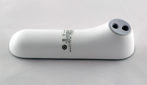 На обратной стороне инфракрасный измеритель, отсек внизу ручки снимается, туда ставятся две батарейки, входящие в комплект. Утверждается, что этих батареек хватает на 3000 измерений.