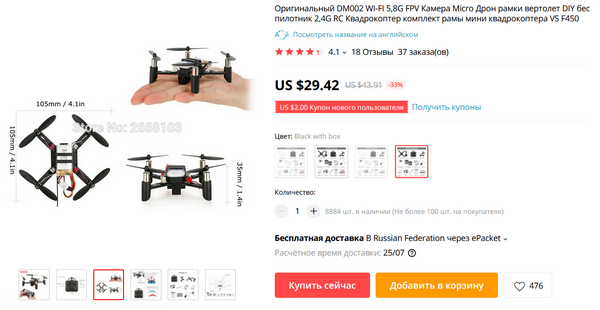 Я поражен торжеством российской науки. Вот вроде только-только компании "Децима" и "Эра" представили дрон-наноразведчик, как тут же на Али появился вот такой Оригинальный DM002 WI-FI 5,8G FPV.