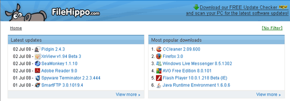 Удобный и симпатичный сайт, на котором выкладываются новейшие версии различных бесплатных (также изредка попадаются условно-бесплатные) программ - FileHippo.com. Программы разбиты по категориям (вот, например, бесплатные антивирусы), также есть два интересных раздела - последние обновления и самые популярные программы.
