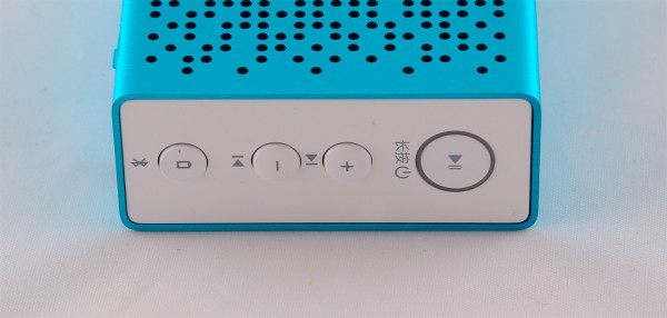 На правом торце - кнопка "проигрывание/пауза", она же включение/выключение питания, кнопки регулировки звука (они же при длинном нажатии - предыдущий/следующий трек), кнопка сопряжения по Bluetooth.