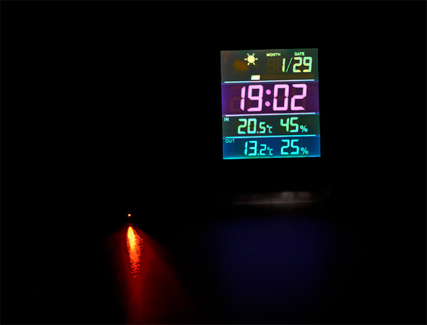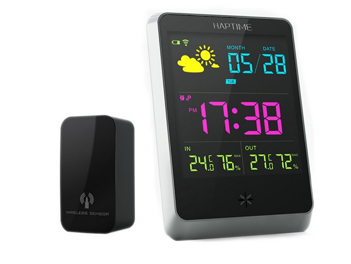 Мне нужен был слабосветящийся экран, чтобы он, со одной стороны, не мешал, но, с другой, чтобы можно было бросить взгляд и узнать время. И температуру за бортом и в комнате. И влажность. И чтобы внешний датчик был беспроводной.