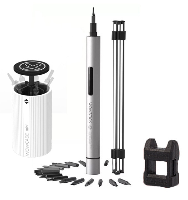Очередной хозяйственный гаджет от Xiaomi приехал - электроотвертка с набором самых разнообразных головок Wowstick 1 P Pro. Там два варианта: один за 20 баксов - отвертка, головки, чехол, магнитизатор, другой за 25 - туда добавляется еще подставка для часто используемых головок.