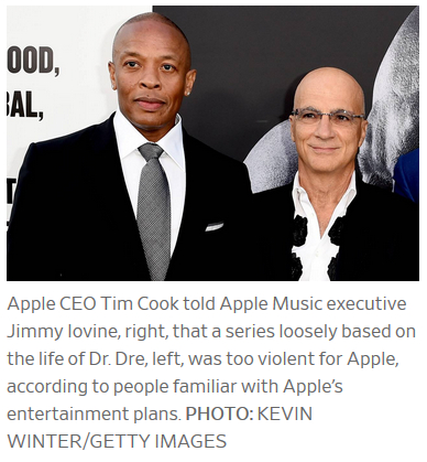 В результате сериал отправили на полную переделку. Никакого секса, мата, насилия. Dr.Dre должен распевать песенки про айфоны, сидя за ослепительно белым роялем с известным логототипом, в ослепительно белой комнате, за окном которой призывно светит известный логотип. Чувствительные социальные темы, добавил Кук, тоже нельзя.