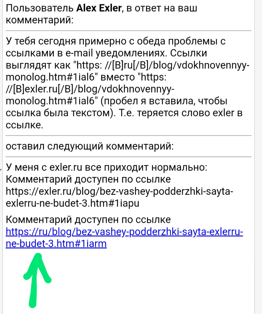(пробел я вставила, чтобы ссылка была текстом). Т.е. теряется слово exler в ссылке.