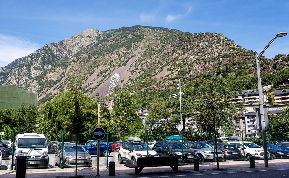 Ну и вот мы уже в самом сердце Андорры - Androrra La Vella. Город со всех сторон окружен горами, а на горах, разумеется, кто-то из туристов уже что-то нарисовал, негодяи!