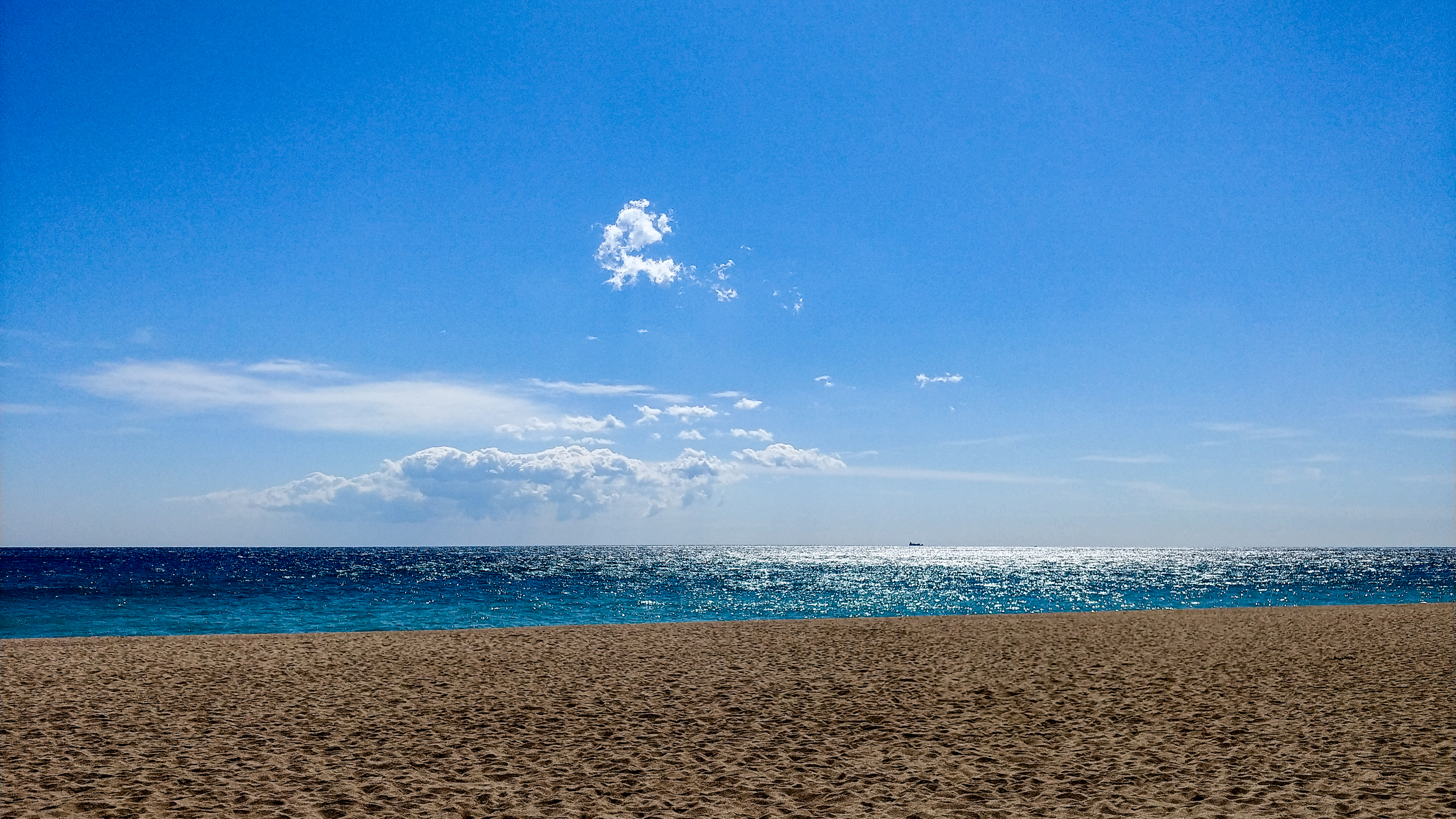 Прохладно, сильный ветер, но ясное солнце. Вот так сидишь на лавочке на море, в воздухе оптимистично пахнет борщом из соседнего ресторанчика, стоящего на пляже, а ты жмуришься на солнце и думаешь - хорошо-то как, de puta madre! Милые испанские мотивы. Правда, откуда там вдруг взялся борщ - понятия не имею, но пахло именно борщом.
