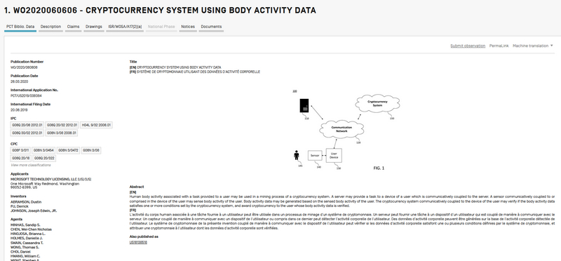 3) Патентная заявка не на чип, а на привязывание криптовалютных механизмов к данным, полученным с датчиков активности человеческого организма и мозга. Причем, нигде в заявке не идет речь о вживлении датчиков. Даже для сбора данных по активности мозга идет речь про не-инвазивные датчики. Но зачем же читать текст патентной заявки, если народ и так схавает.