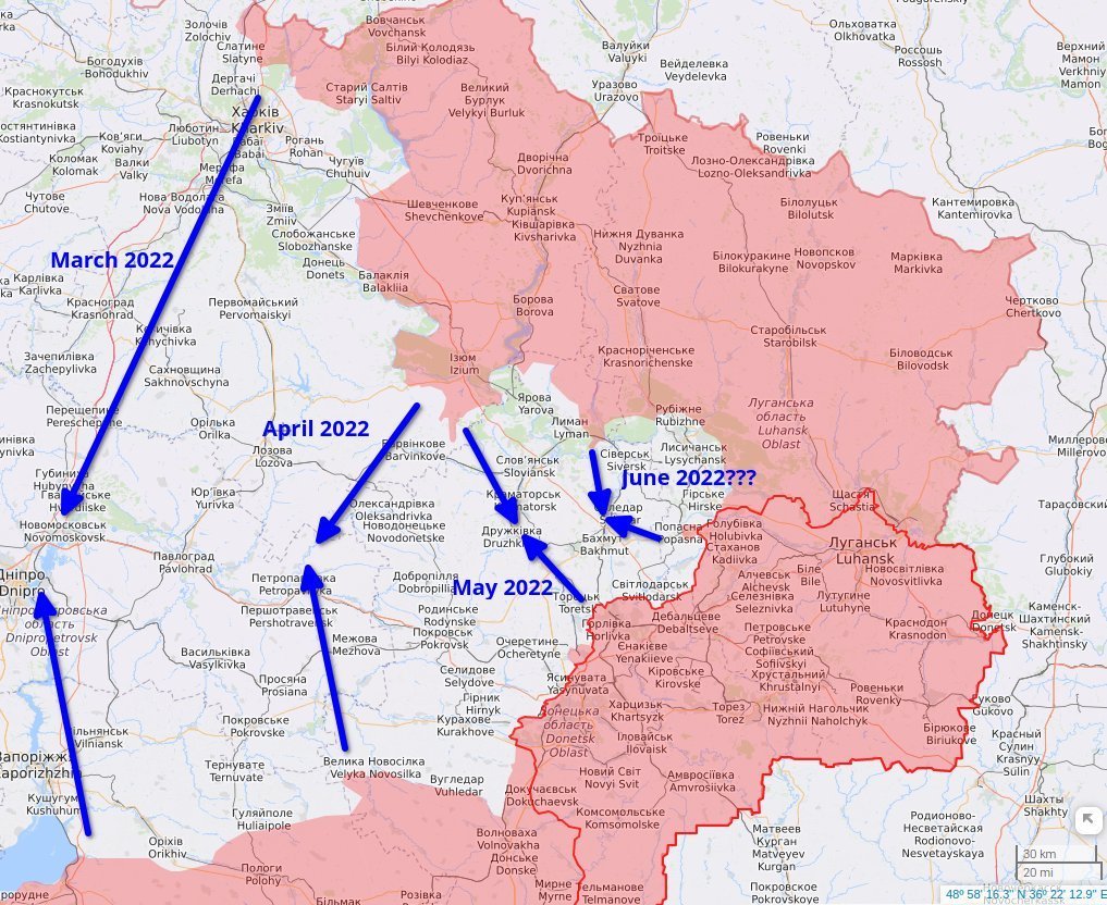 Основные усилия армия РФ, как и раньше направляет на окружение Северодонецка (административного центра подконтрольной Украине части Луганской области) и соседнего с ним Лисичанска с севера и юга.