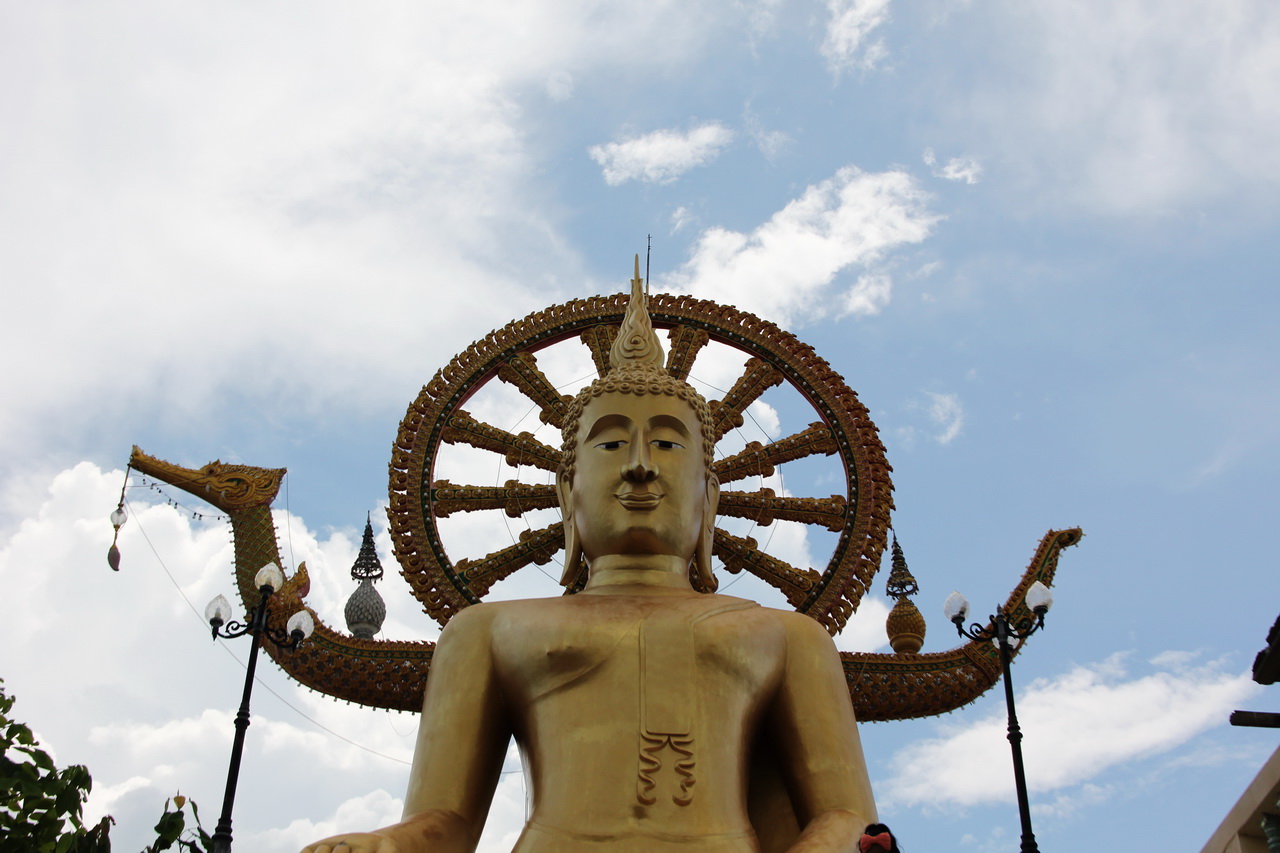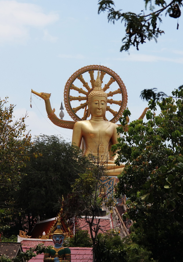 Двенадцатиметровая позолоченная статуя Большого Будды находится в монастыре на маленьком островке Фан рядом с Самуи. К островку насыпали дорогу, так что туда можно добраться на машине безо всяких проблем.