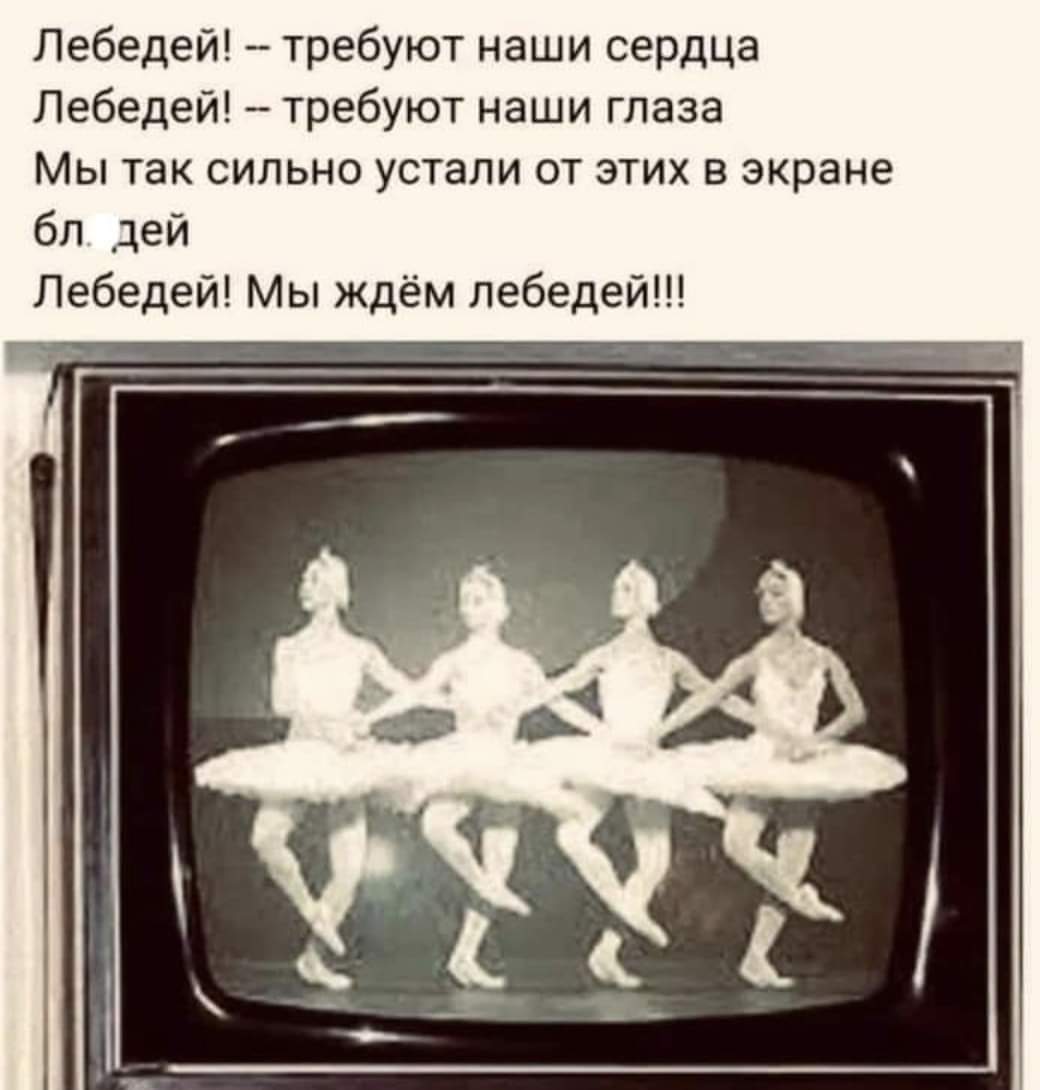 Вот именно этот вопрос надо решить незамедлительно. Может, только из-за этого пока и не показывали танец маленьких лебедей по телевизору?!