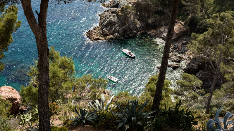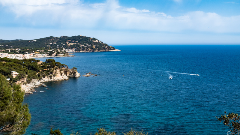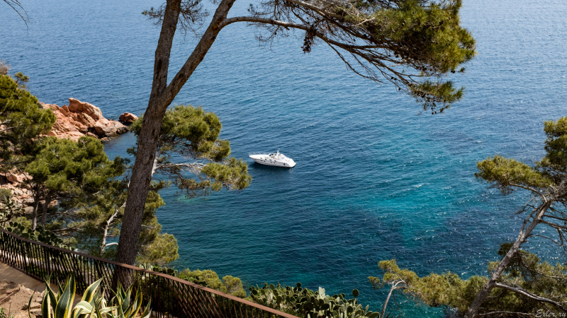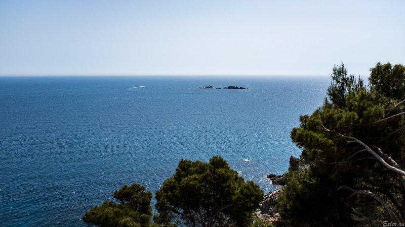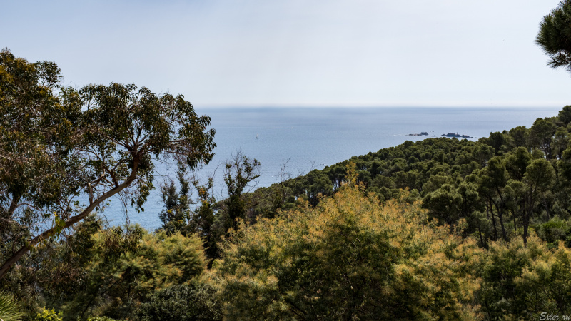 А это мы уже по кругу вернулись к усадьбе, отсюда - вид на соседний залив, Калейю-де-Палафружель и сам Палафружель. Пара, создавшая данный сад, прямо на этом месте пила чай, любуясь окрестностями.