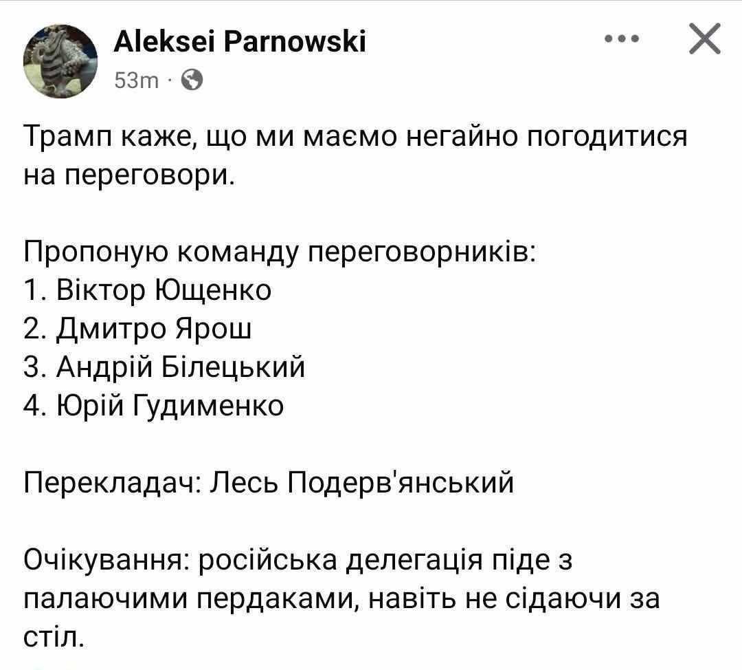 Если вдруг русская сторона на меньшее не согласна. А если так, то четко это узнать, заявить и смотреть, что важнее: не уступить этому или достичь мира. Конечно, имея какой-то план, если вдруг русская сторона и после этого мир нарушит. Но что там мусолить по 5 часов? Или вообще, 4-й год. А все это затягивание и отсутствие принятия решений явно кому-то выгодно и работает на русскую сторону, как минимум для того, чтобы перебить побольше украинцев и побольше им усложнить полноценную жизнь, вымотать, заставить уехать и т.д.