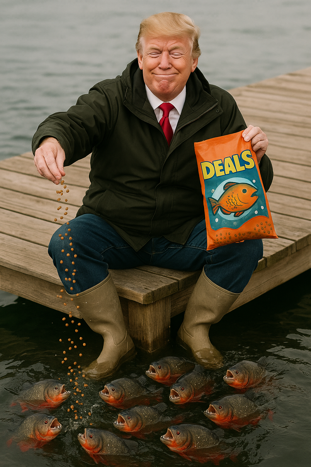 Мне одному кажется, что Запад никогда не выглядел таким смешным, как сейчас? Путин в Москве после всех сделанных ему предложений о налаживании экономического сотрудничества рассуждает, что ждёт от ограбленного иностранного бизнеса чего-то большего чем извинения за высочайшее позволение вернуться в Россию, а Зеленский, Эрдоган и сам Трамп не заглушают турбин самолётов в намерении метнуться, как вышколенные лакеи, в Стамбул, если Путин решит туда приехать (о чём он даже не заикался и чего он, конечно, не сделает - лакеи они и есть лакеи, пусть постоят в низкой стойке). И когда всё это станет ясно и надежды рассеются, появятся новые санкции - приблизительно такие как отказ от введения против России пошлин, потому что "не хотим разрушить перспективы мира". Путин, конечно, великий политик - без всякой иронии. Вертит ну просто всеми и как хочет