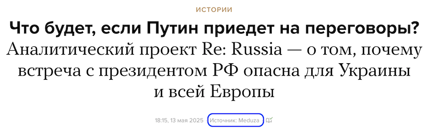 Вчера в Медузе наткнулся на очень странный аналитический материал о том, почему, если Путин вдруг приедет в Стамбул, то это прям очень плохо и всем надо начинать бояться. Оказалось, что это перепечатка издания RE:Russia - вот оригинальная статья "Американская мечта: встретятся ли Путин с Трампом в Стамбуле и чем эта встреча опасна для Украины".