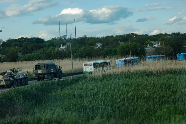 Колонна автобусов с бойцами "Азовстали". Alessandro Guerra / EPA / Scanpix / LETA