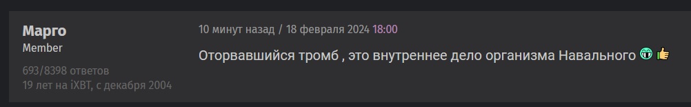 P.S. Меня на IXBT забанили в феврале 2022 года, я пытался донести до форумчан весь кошмар происходящей катастрофы... и я с ужасом понял, что почти все они - людоеды, мечтающие об убийствах и поебдах. И это "железячники", а такие же безмозглые, как пьяное и обколовшееся быдло из далёкого замосковья.