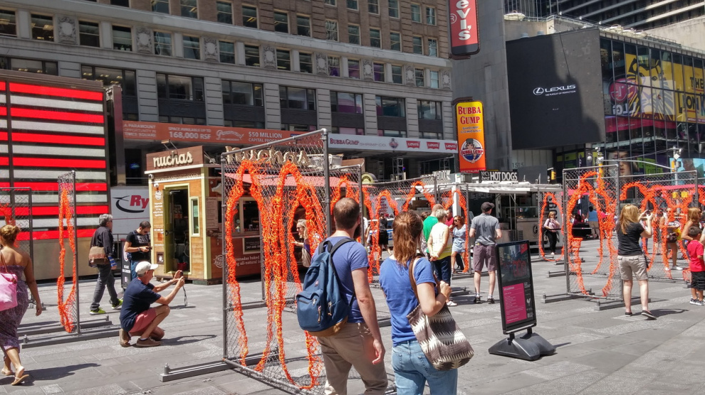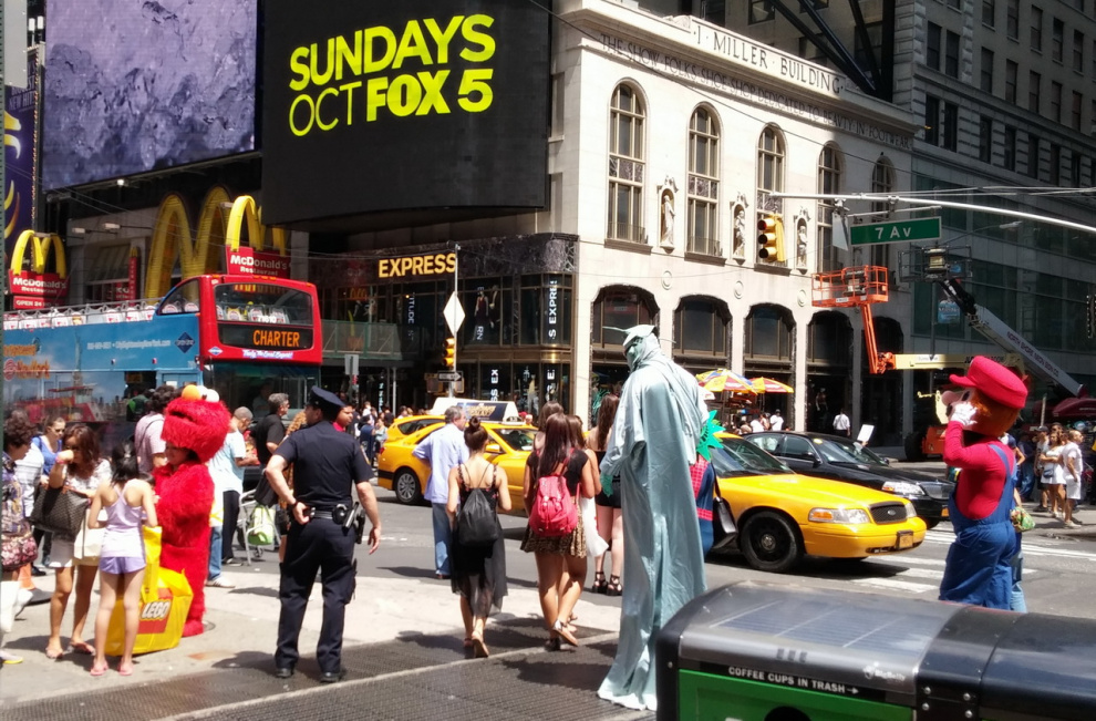 Что то со статуей мента, которая между статуей свободы и Элмо - не особо много желающих фотографироваться.