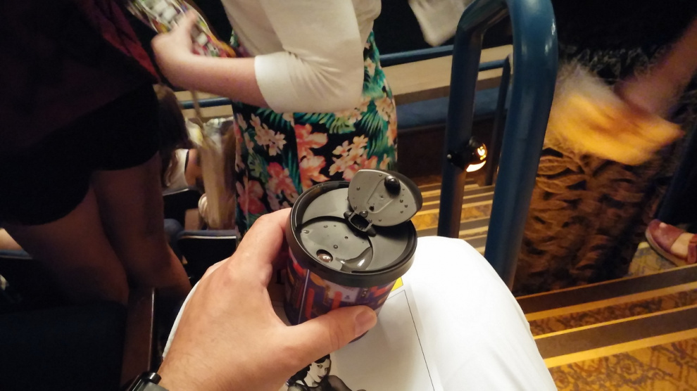 В храме искусства перед мюзиклом в баре предлагали любые напитки, которые можно было взять с собой в зал, но в специальных безопасных стаканчиках с крышками.