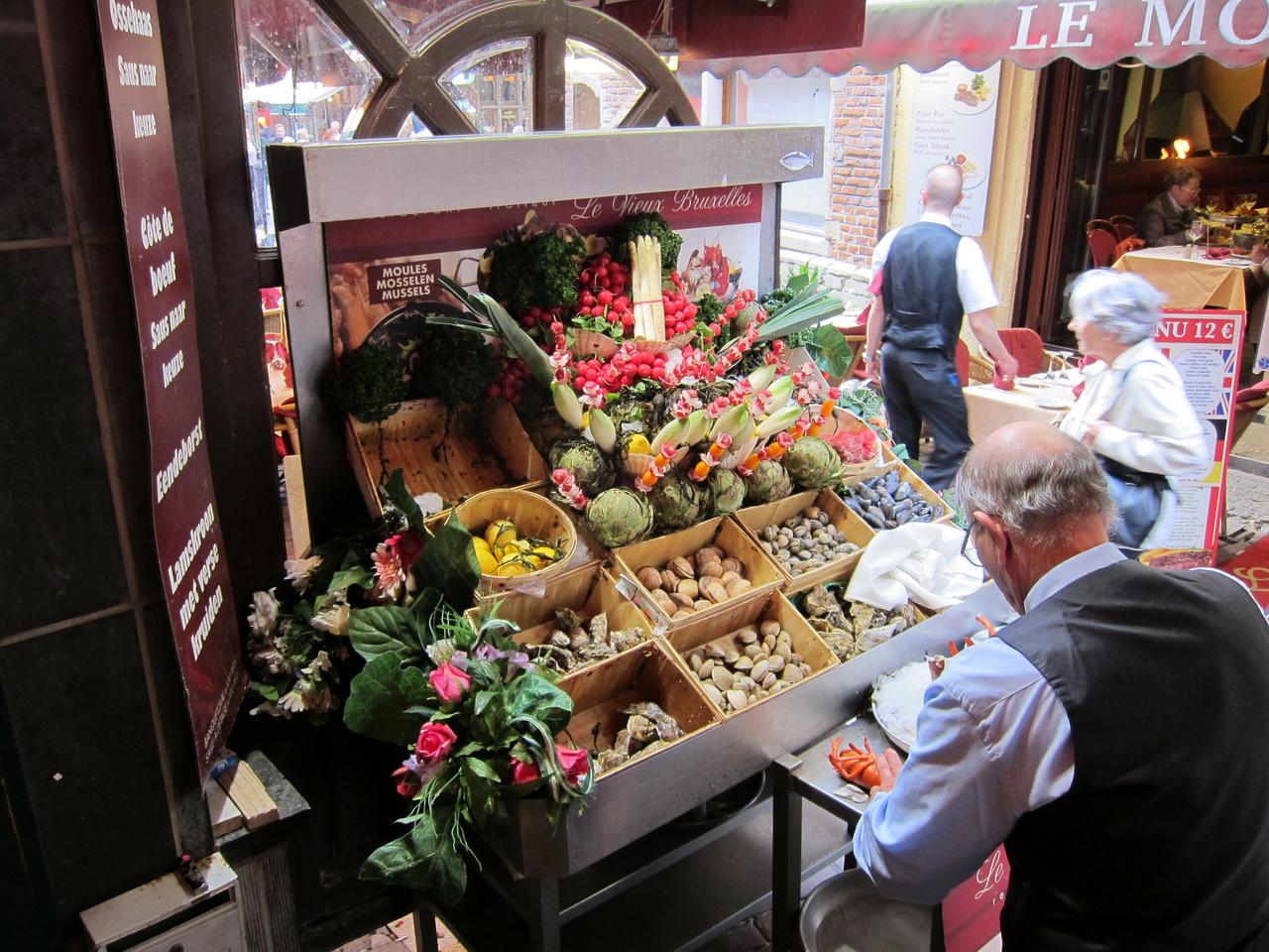 Оббегали половину Брюселля в поисках ресторана с устрицами - ну, вот захотелось. Наконец-то нашли ресторанчик, где половина меню выставлена на улице. Хороший ресторанчик, кстати, оказался.