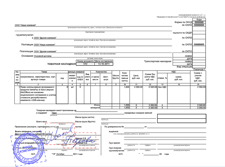 Вы увидите, что для каждого типа документа подписи и печать находятся на нужных местах. Более того, накладная и счет-фактура будут сразу развернуты горизонтально. Впечатляет, не правда ли?
