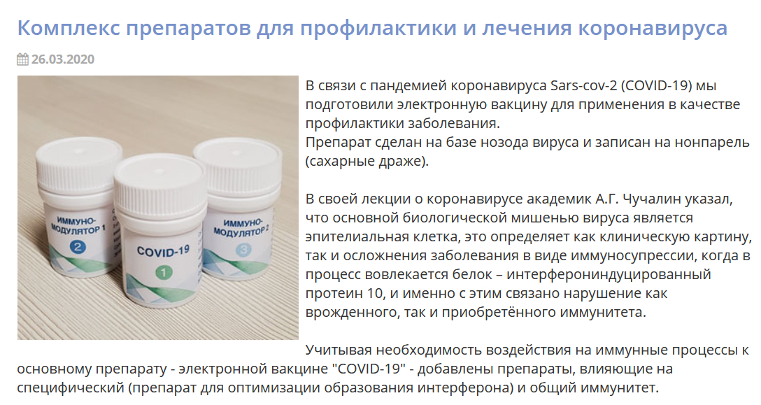 Шустренько они. Но, впрочем, вполне ожидаемо. Электронную вакцину на нонпарель записали. 2000 рублей всего за комплектик сахарных шариков, налетай. Вчера уже в Facebook активно рекламировались.