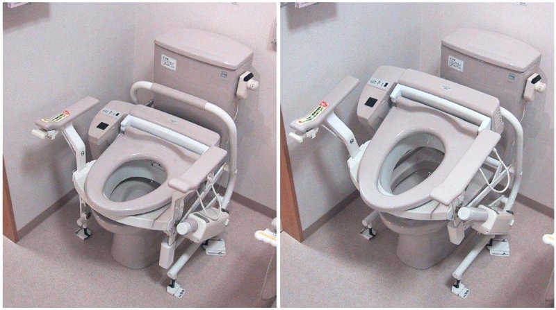 Если серьезно, то предполагаю, что это унитаз для инвалидов, чтобы им легче было покидать его по окончании процесса.