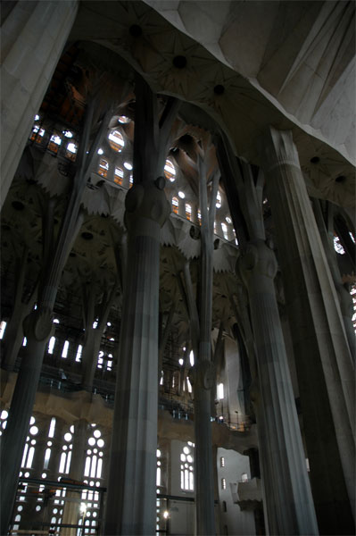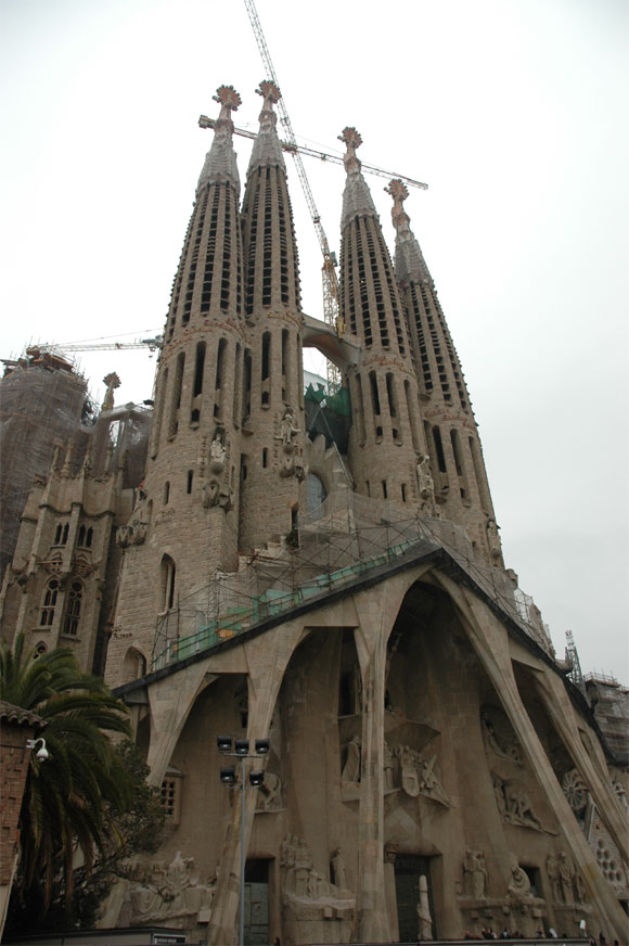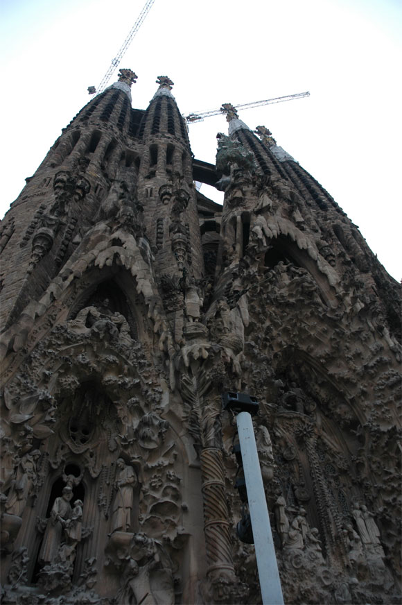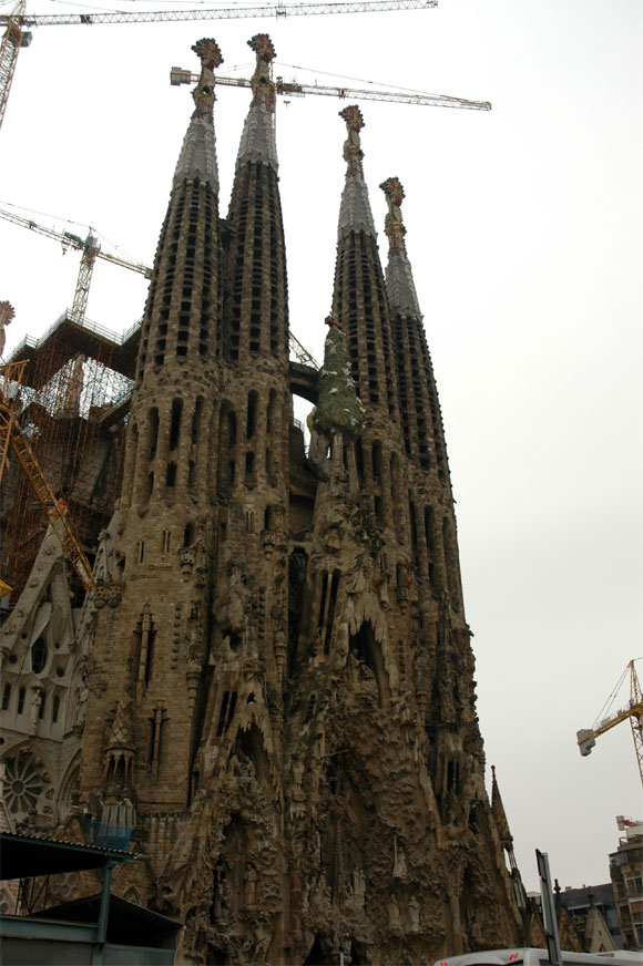 Я знал, что Гауди - он человек совершенно удивительный, фактически второй Леонардо - то есть какой-то марсианин. Sagrada Familia - это совершенно марсианская постройка. Причем ее строят уже 128 лет - с 1882 года. Просто Гауди сказал, что никакого государственного финансирования, так что должны строить только на пожертвования прихожан. Да и то - там куча ограничений. Поэтому самая высокая церковь в мире (выше даже Собора святого Петра в Риме) строится до сих пор. И еще непонятно сколько будет строиться. Но это произведение нечеловеческого разума. Это что-то невероятное! (Погода была паршивая, но все равно видно хорошо.)