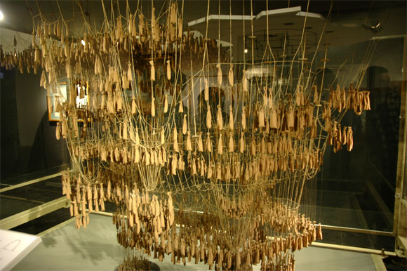 Ниже - фотография из музея этого строения. Модель, по которой все вывешивалось Гауди - математических моделей-то тогда не было.