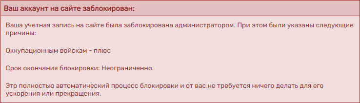P.S. Фраза "Оккупационным войскам - плюс" – это уже от самой модерации, "типа-объяснение" причины бана. Ну, хорошо, что хоть пояснили, вежливые такие, мимими прям... 🤗