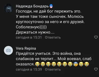 Нередко некрологи пишут матери погибших парней. Это самая лютая категория. Для многих из них потеря сына - не трагедия, а повод для гордости и дополнительной ненависти. Мать наконец-то стала центром внимания местного комьюнити. В комментариях весь город/ПГТ/посёлок распинается перед ней, кланяется, благодарит, соболезнует и желает сил. И не дай бог там задать вопрос "За что он погиб?" На вас слетится стая безграмотных тёток-матершинниц. Вас обложат хуями с шести сторон. Заходишь к ним на странички, а там улыбчивые благодушные женщины 60+, цветочки, рецептики, схемы вязания. Поколение моей мамы. Моя мама - Z-шница. И хоть на вопрос "Ты б хотела, чтоб я там оказался?" она отвечала "Нет, конечно", я понимаю, что ей бы тоже польстило такое внимание в соцсетях. Это ужасно, но я легко могу представить пост на её странице "В зоне СВО погиб мой Серёженька..." и много-много комментариев под ним. От этого так погано на душе, от самой лёгкости этого представления.