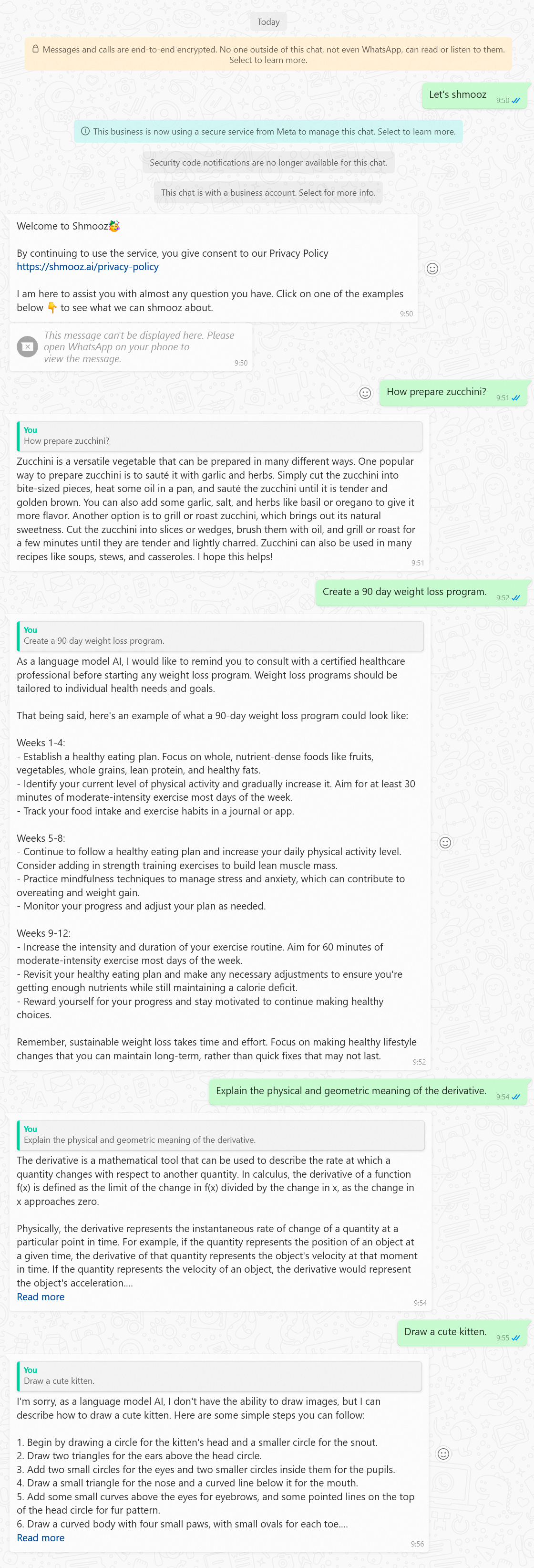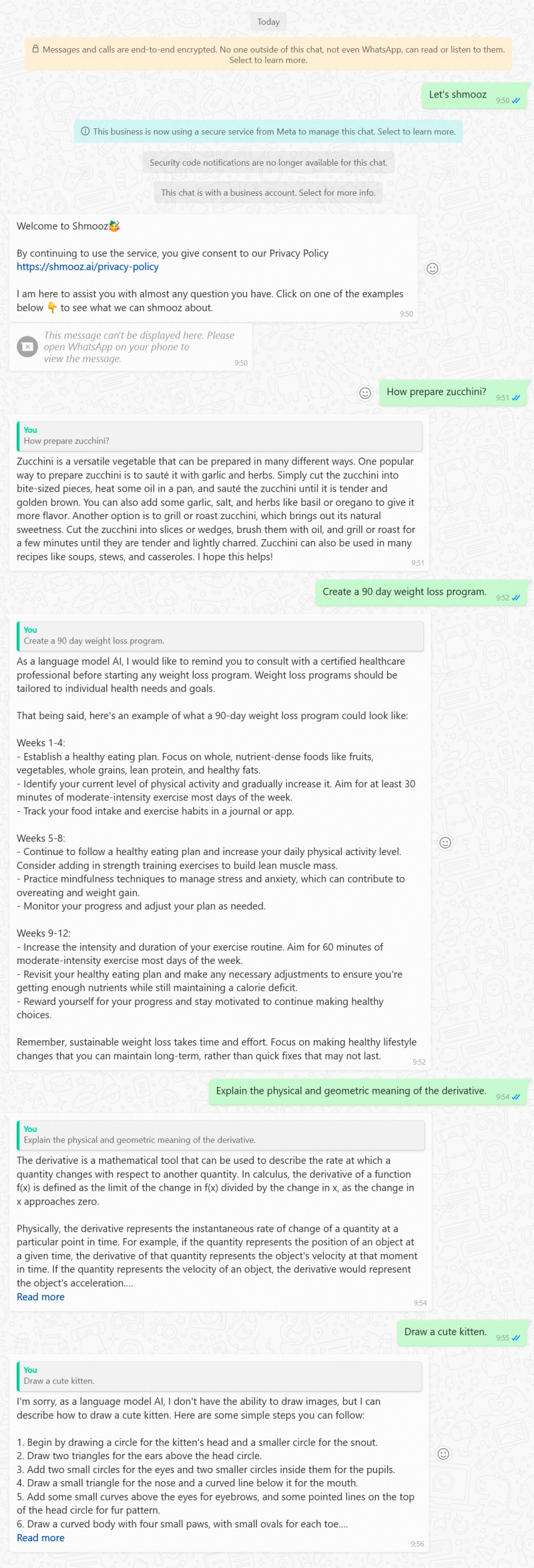 Рекомендую еще разобраться с тем - с какой именно версией происходит общение. Потому что, скажем, на сайте самого Open AI - бесплатный доступ к GPT-3.5. А платная подписка за 20$ дает доступ к последней GPT-4. И я вам скажу: разница, может, и не так чтобы прямо небо и земля, но все же существенная. Я уже подсел на четвертую версию и с предыдущей общаться не интересно. Что-то мне подсказывает, что этот "неограниченный доступ" в WhatsApp за десять баксов - вряд-ли окажется неограниченным доступом к GPT-4, который на официальном сайте стоит двадцатку.
