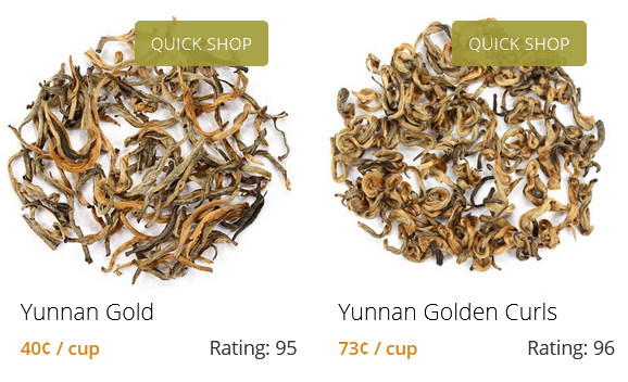 Некоторое время назад основным чаем для меня был китайский чай Yunnan Gold (AKA Dian Hong), который приходилось заказывать аж из Америки (нигде ближе не нашел, даже в их отделении в Великобритании). Он и так-то дорогой, а с посылкой из Штатов еще и периодически налетаешь на таможню, которая сдерет еще где-то %35 или больше (как у них фишка ляжет). Полкило - $79, но зато вкуснейший. Есть еще один его вариант, более вкусный - Yunnan Gold Curl. Но он продается только 85-граммовой баночкой, которая стоит $29 (почти доллар чашка), поэтому такой я покупаю только для особо дорогих гостей.