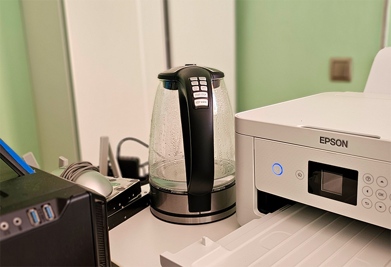Не могу не спросить - а зачем держать рядом с собой чайник?.