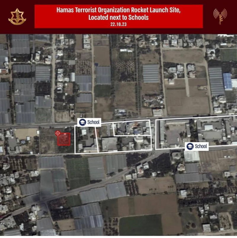 На фото ниже - ракетные установки Хамас возле детского сада и двух школ. Вчерашний снимок. Тактика та же - прикрываться детьми.