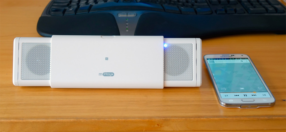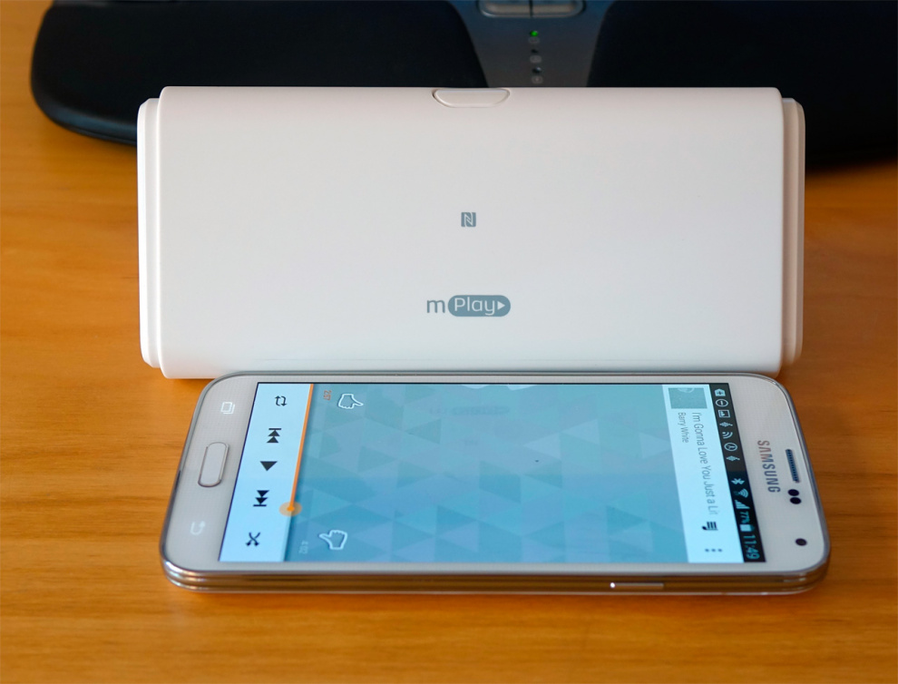 Со смартфоном колонка завязывается через BT или NFC - ну и все, воспроизводите музыку со смартфона на этой колонке. Звучит - очень и очень пристойно. На полной громкости нормально "прокачивает" даже большую комнату. Высокие - очень хорошие, звук вообще на твердую четверку (особенно учитывая размеры). Басов, конечно, не хватает, но откуда им там взяться в такой крошке?