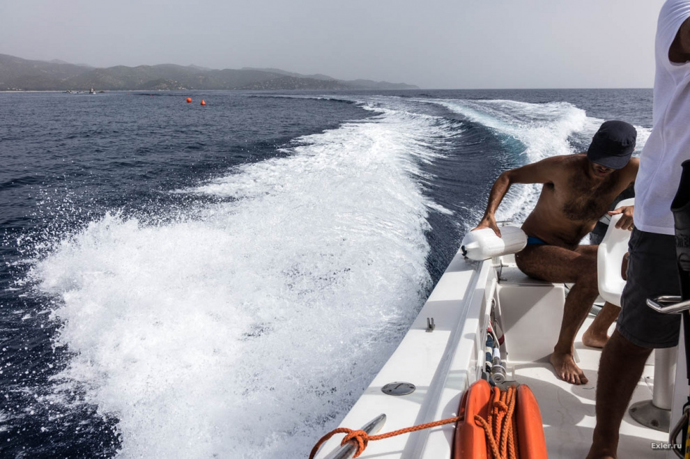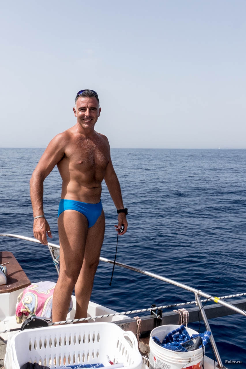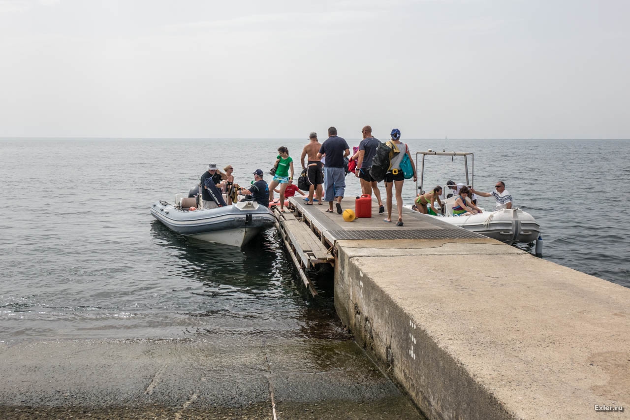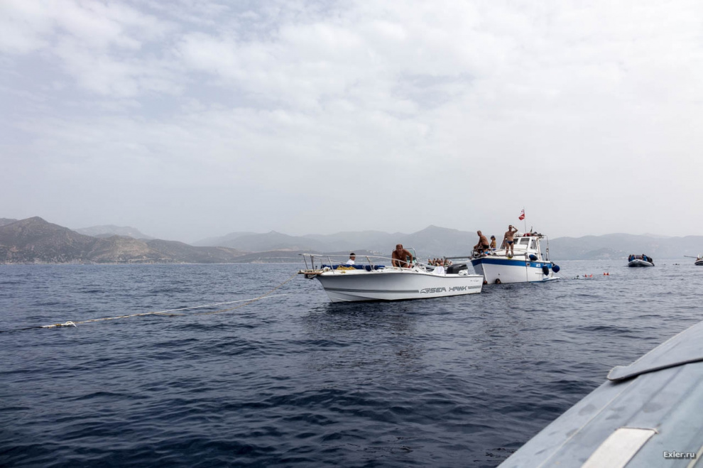 Мы с фотографом команды Александром Акивисом и судьями в теле сели во вторую лодку - и отправились на место погружений.