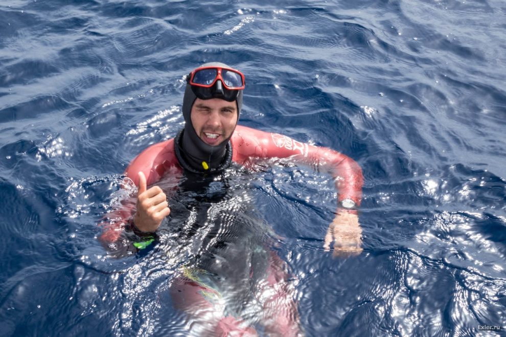 Андрей отдохнул 20 минут и сделал еще одну попытку. На этот раз все в порядке - Андрей чисто нырнул на 88 метров.